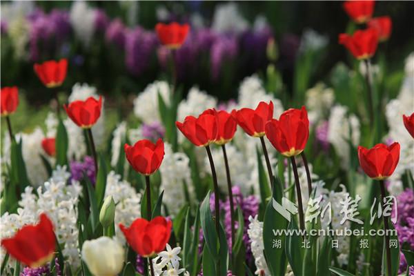 郁金香、風(fēng)信子、洋水仙、大花蔥……春日里最色彩斑斕的球根花卉家族,也到了綻放風(fēng)姿的好時(shí)候。武漢植物園通過多種球根花卉混播的手法,打造球根花田、花徑、花帶。60萬株球根花卉已經(jīng)開放三成,在武漢植物園中心草坪、菊花圃、湖岸帶等地斑斕盡放,與園區(qū)的奇花異草、高大的喬木、蜿蜒的小徑、青翠的草坪、幽靜的水域結(jié)合,構(gòu)成一幅幅色彩繁茂的畫卷。