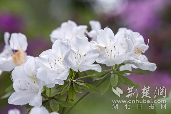 杜鵑花色艷麗,武漢植物園的杜鵑除紅色、紫色、粉色、白色等單色外,還有綠色杜鵑和復(fù)色杜鵑花。從國外引進的綠色杜鵑品種“綠色光輝”,花朵小巧玲瓏,色如碧玉,十分罕見。復(fù)色杜鵑“皇冠”花朵白粉相間,粉紅色鑲邊,素雅又不失顏色,一掃杜鵑的艷麗姿態(tài),既清新又迷人。