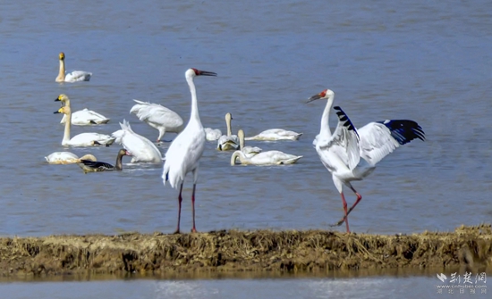 綠色赤壁吸引候鳥前來嬉戲。通訊員 供圖