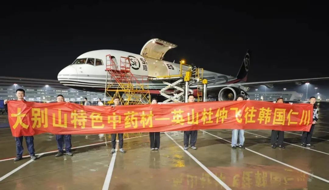 卸貨、稱重、貼標(biāo)、安檢、打板、上車(chē),一氣呵成……5月15日下午,86箱1.37噸英山杜仲,在黃岡城市貨站完成預(yù)報(bào)關(guān)、稱重等流程后,運(yùn)往花湖國(guó)際機(jī)場(chǎng),搭乘次日5時(shí)11分飛往韓國(guó)仁川的順豐航空O3141航班,僅3小時(shí)19分后便抵達(dá)目的地。