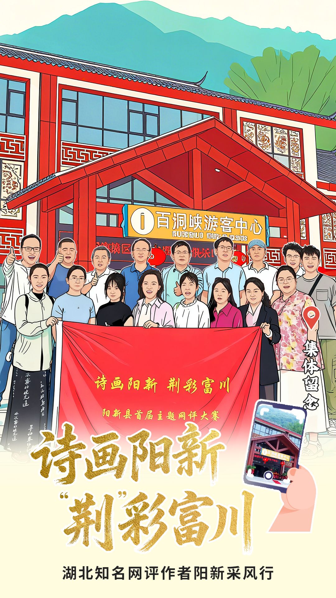 湖北骨干網(wǎng)評(píng)作者調(diào)研陽(yáng)新文旅產(chǎn)業(yè)后集體留影。