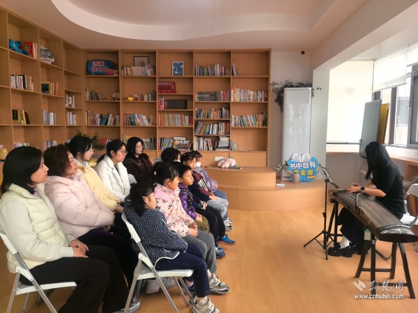 當(dāng)天上午,黃鶴書(shū)房?jī)?nèi)箏聲潺潺,以“琴潤(rùn)書(shū)香遇知音”為主題的古箏生活美學(xué)雅集在這里上演。二十余位居民齊聚一堂,在專業(yè)老師的帶領(lǐng)下,共同走進(jìn)古箏的悠遠(yuǎn)世界。