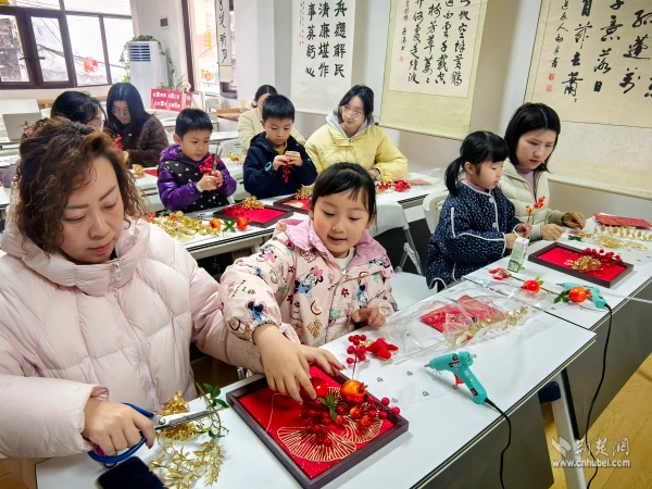 為迎接新春佳節(jié),傳承非遺手工技藝,“吉年添彩·手作年宵花畫(huà)框共創(chuàng)會(huì)”也在書(shū)房?jī)?nèi)熱烈展開(kāi)?;顒?dòng)以“筆墨書(shū)香里尋年味,非遺手作中傳文脈”為主題,吸引了眾多親子家庭與手工愛(ài)好者參與。