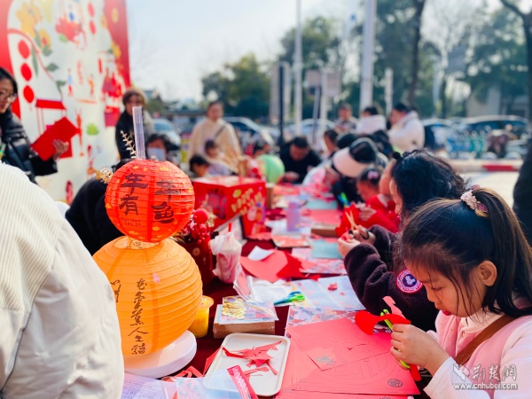現(xiàn)場(chǎng)節(jié)日氛圍濃厚,文化氣息撲面而來(lái)。居民們不僅可以便捷選購(gòu)年貨,還能免費(fèi)參與多項(xiàng)文化體驗(yàn)活動(dòng)。書(shū)法老師帶領(lǐng)孩子們揮毫潑墨,一副副春聯(lián)和福字傳遞祝福;黃鶴書(shū)房設(shè)置的投壺游戲區(qū),讓市民在趣味中重溫傳統(tǒng)年俗;非遺手作課堂內(nèi),搖錢(qián)樹(shù)制作、剪窗花等技藝吸引眾人親手嘗試,近距離感受非遺魅力。市集匯聚30余家品牌商戶(hù),商品涵蓋生鮮食品、休閑零食、健康禮品、文創(chuàng)產(chǎn)品等,充分滿(mǎn)足了居民“一站式”購(gòu)齊年貨的多元需求,真正實(shí)現(xiàn)便民與惠民相統(tǒng)一。
