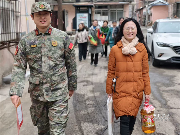 荊楚網(wǎng)(湖北日報(bào)網(wǎng))訊(通訊員 蘇楚雄 鐘霓 游薇 侯本瑞)1月29日,武昌區(qū)楊園街道電力新村社區(qū)鑼鼓聲響、熱鬧非凡。街道人武部、退役軍人服務(wù)站和社區(qū)工作人員組成“報(bào)喜小隊(duì)”為現(xiàn)役軍人家屬送去子女在部隊(duì)榮獲的“四有”優(yōu)秀學(xué)員榮譽(yù)證書,并送上慰問物資,傳遞對軍屬的崇高敬意和誠摯關(guān)懷。