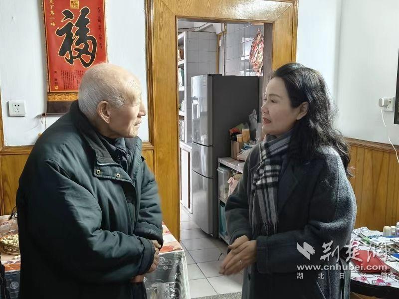 1月30日,在唐家墩街道站東社區(qū)藍(lán)色天際小區(qū),區(qū)人大代表黃春燕來到高齡老人家中走訪慰問?!鞍⒁?,最近身體怎么樣?天氣冷了,要多注意保暖?!币痪浜唵蔚膯柡颍舜砼c居民之間的距離。黃春燕詳細(xì)詢問老人們的身體狀況和生活起居情況,并送上大米、食用油及節(jié)日禮盒等慰問物資。