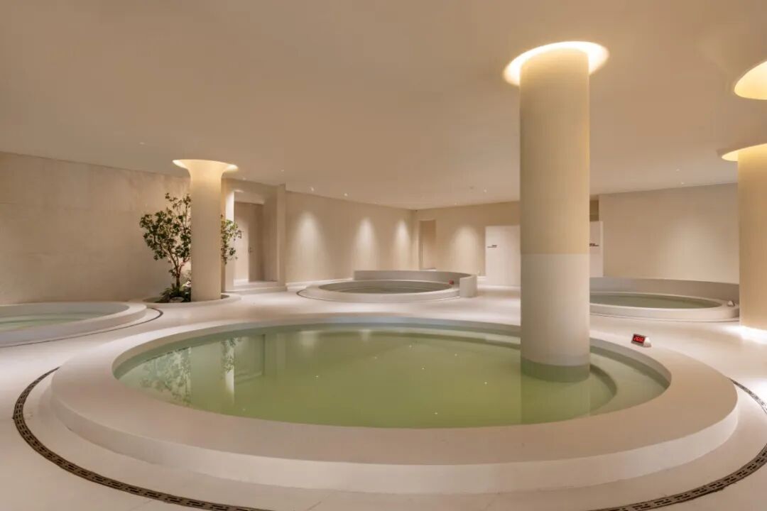 140間客房均自帶私湯院落,庭院內(nèi)草木蔥蘢,私密性極佳。民宿共設29處室內(nèi)外湯池,分別主打康養(yǎng)、美容、舒緩等不同功效,搭配中草藥包,養(yǎng)生與舒適兼?zhèn)洹?/p>
