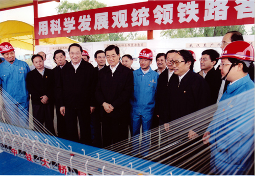 2005年8月22日上午,中共中央總書記、國家主席、中央軍委主席胡錦濤同隨行的中共中央政治局候補委員、中央書記處書記、中央辦公廳主任王剛,在中共中央政治局委員、湖北省委書記俞正聲,湖北省省長羅清泉等陪同下,考察了正在建設中的武漢天興洲公鐵兩用長江大橋工程,對鐵路建設作出重要指示。胡總書記指出,武廣鐵路客運專線和武漢天興洲大橋是中國鐵路建設史上新的里程碑。這條鐵路線的建設標志著中國鐵路客運專線建設的開始,今后要建設更多的鐵路客運專線。一定要把武廣客運專線和天興洲大橋這個我國鐵路建設史上新的里程碑工程建設好。