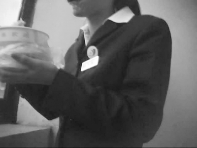 68時40分之后,市房管局登記交易大廳26號窗口工作人員在吃早餐。